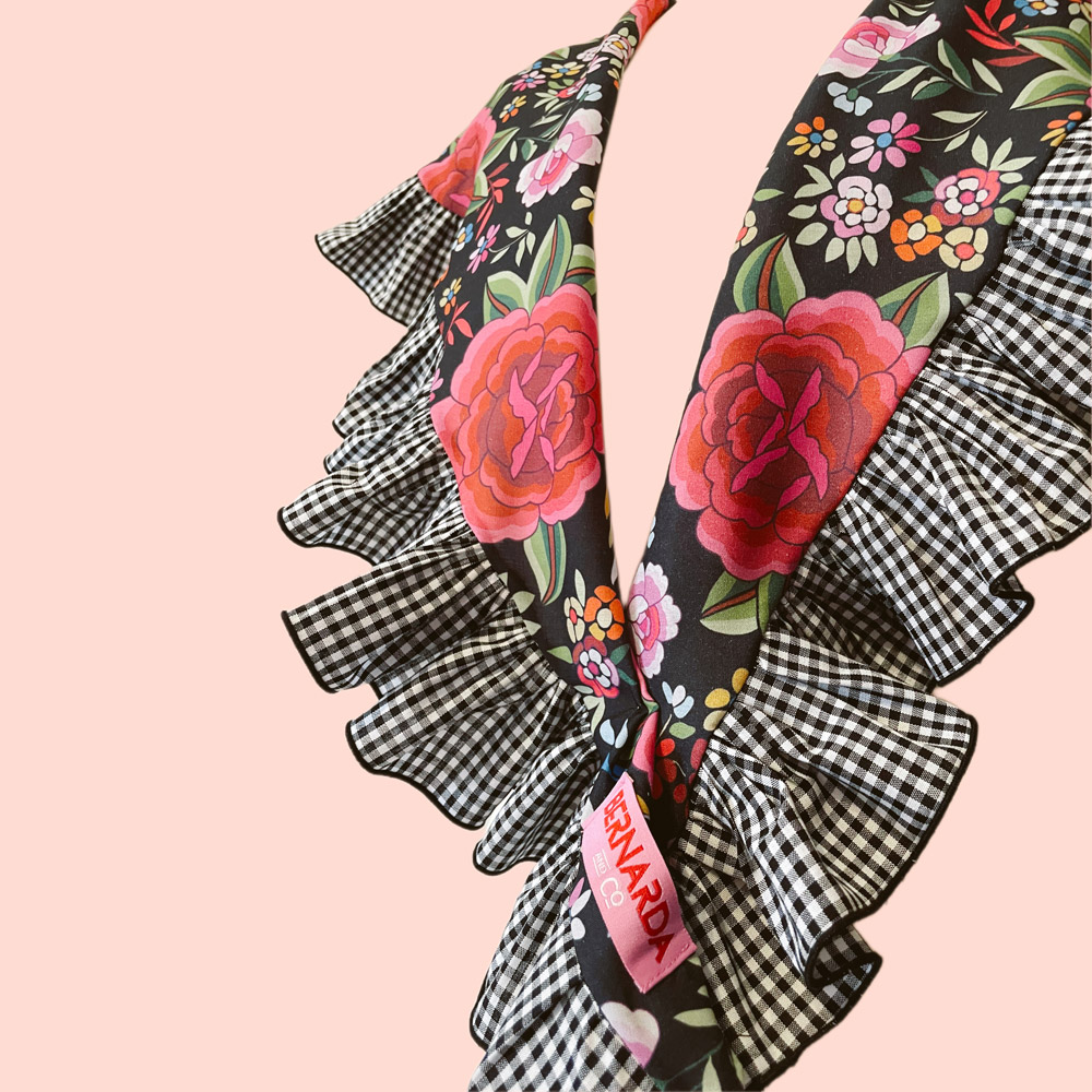 Piquillo de flamenca confeccionado en batista de algodón con volante fruncido decorativo. Ideal como complemento para trajes de flamenca en ferias y romerías.